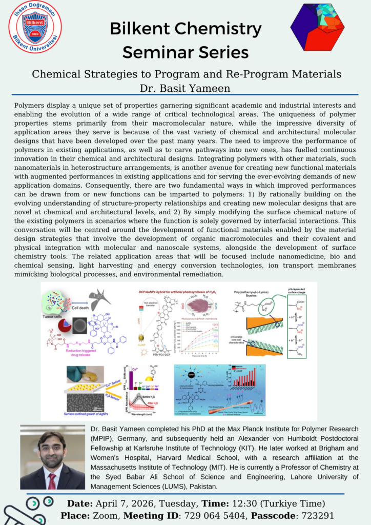 Dr. Basit Yameen completed his PhD at the Max Planck Institute for Polymer Research (MPIP), Germany, and subsequently held an Alexander von Humboldt Postdoctoral Fellowship at Karlsruhe Institute of Technology (KIT). He later worked at Brigham and Women’s Hospital, Harvard Medical School, with a research affiliation at the Massachusetts Institute of Technology (MIT). He is currently a Professor of Chemistry at the Syed Babar Ali School of Science and Engineering, Lahore University of Management Sciences (LUMS), Pakistan.